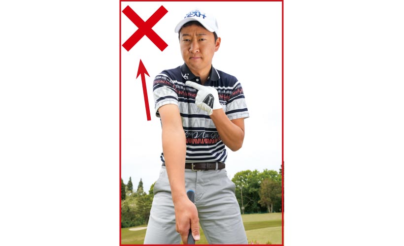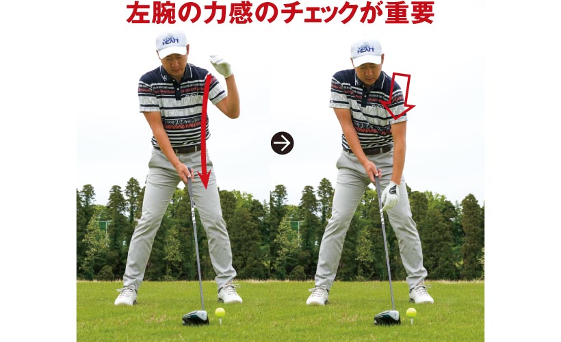 左腕の力感のチェックが重要