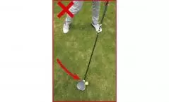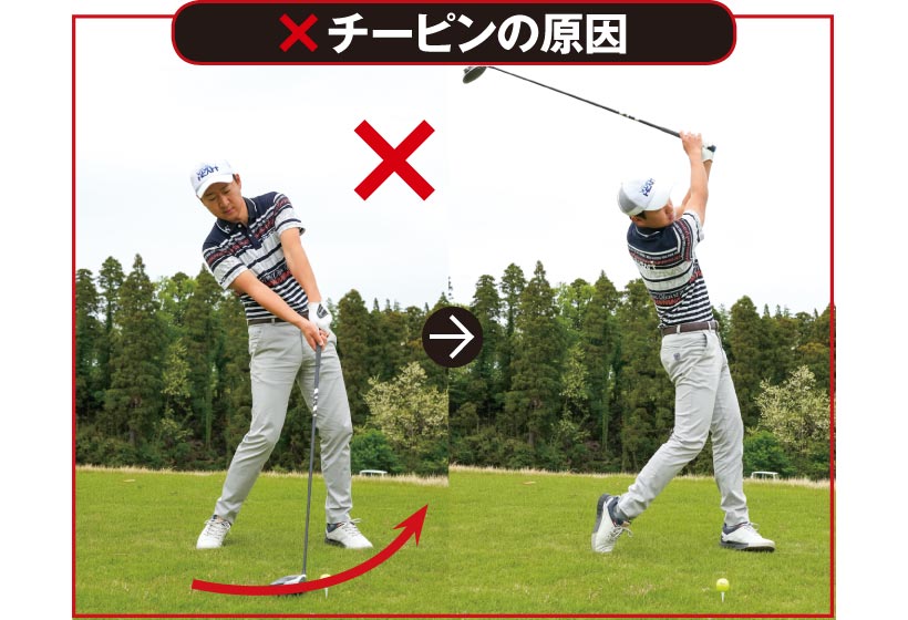 これを解決するにはスイングのドライバー的要素を減らし、アイアン的要素を加えてあげるのが一番。ボールを通常よりも個ぶん内側に置いて、カラダの軸を真っすぐセットしてもいいですし、アイアンショットのイメージでクラブをやや上から入れて、インパクト後にクラブを目標の左へと振り抜くのも効果的です。クラブの軌道と入射角が改善されてチーピンがすぐに止まりますよ。