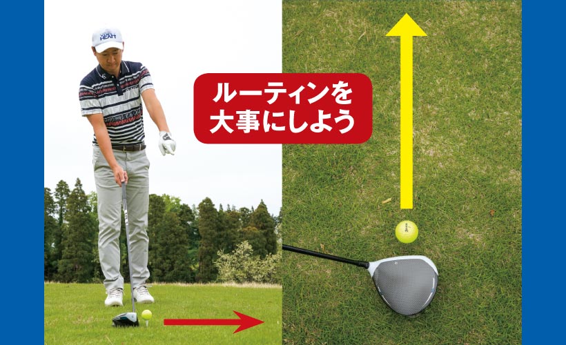 ①打ちたい目標を決めて、「こんな球を打ちたい」と決めたら、イメージした球筋が出やすいアドレスを作ることが重要だ。