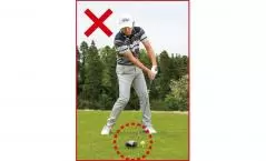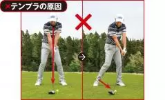 テンプラはボールが高々と上がってキャリーが低下するミス。ダウンスイングでカラダが突っ込んでクラブが鋭角に入るのが原因なのに、ボールが高く上がるから「あっ、すくっちゃった!」と口にする人が多いんですね。もっと上から打ち込もうとしてテンプラが悪化してしまうという悪循環に。