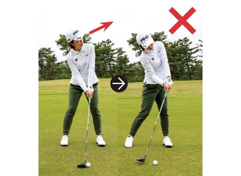 目線が上がって右肩が下がったアドレスになる
