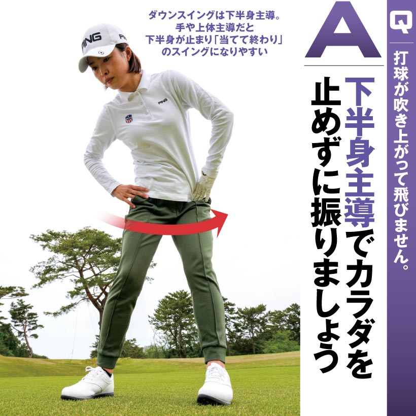 A|お腹を回す意識でダウンスイングしましょう。