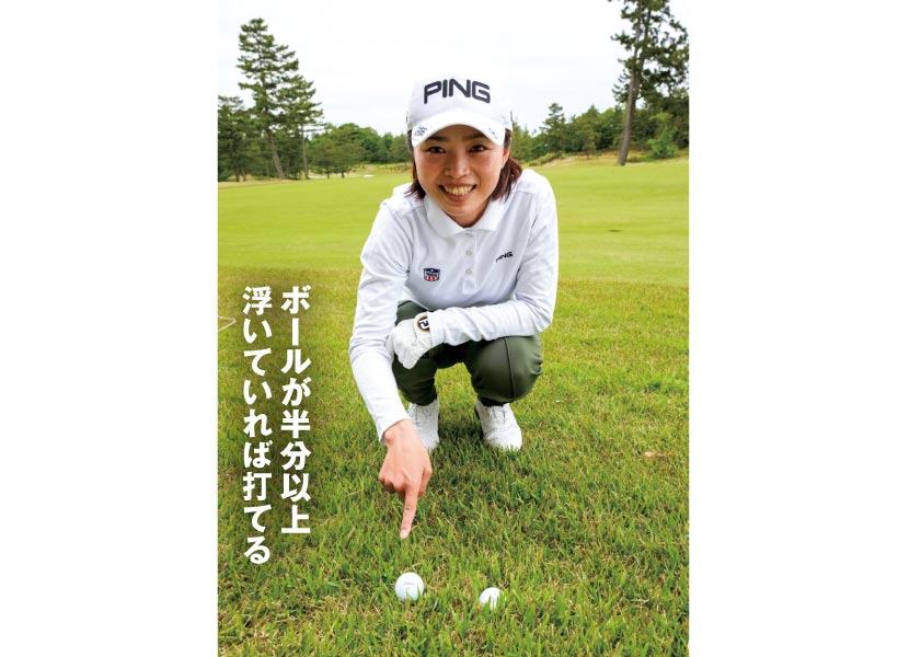 まずアゴの高さとボールのライを確認。高い場合やボールが埋まっていたらFWやUTは使えません。