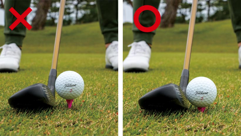 ティショットでは高くティアップしないこと。打ちやすい気がしますが、ボールの下にヘッドが入るとショートするので、低めのティアップがオススメです。