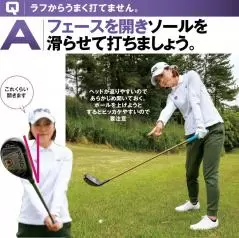 A|フェースを開きソールを滑らせて打ちましょう。
