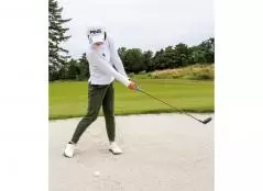 ボールが浮いたラフの場合、ボールの下をクラブヘッドがくぐらないようヘッドを浮かせたアドレスから始動します。