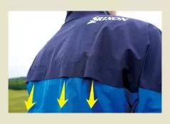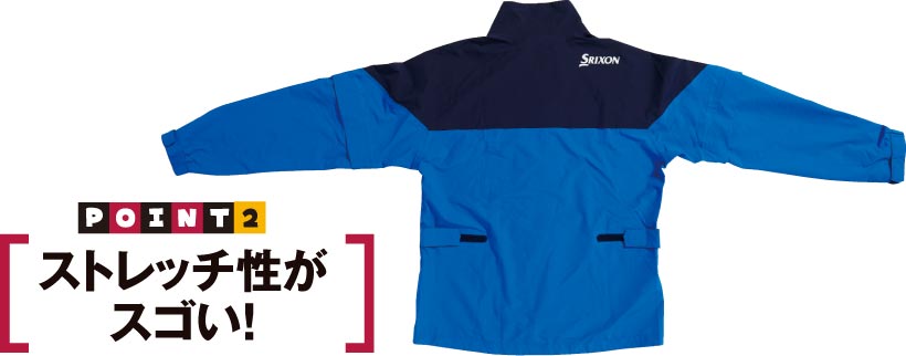 4WAYストレッチ仕様で、スイング時のひっかかりや突っ張りのない自由な動きを可能に。内部への雨の侵入を防ぎつつ、高い防風性をも兼ね備えているので、荒天時も心配なし。