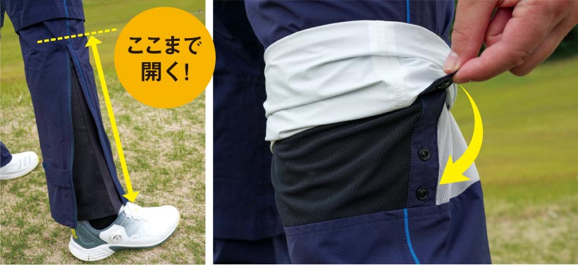 ■ パンツの裾に、脱ぎ履きを楽にするロングファスナーつき