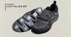 防水性の高いニット素材のシューズ。タンもないので水が侵入しにくい。足を包み込むような履き心地。