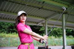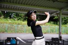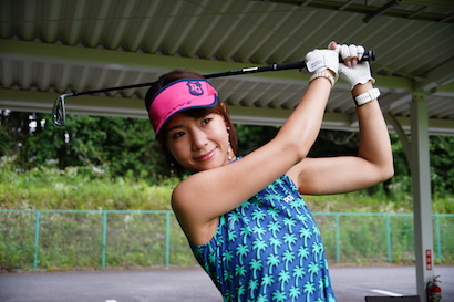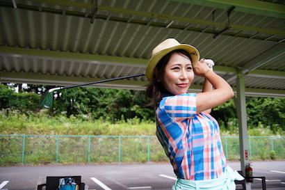 ゴルフ歴はまだまだ浅いが、筋は良い、と言われる梨乃さん。今回の試打クラブはメンズ仕様だったが、振り回されることなく50g台のシャフトで試打できていた。