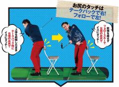 お尻でイスにタッチしてスイングするだけで上体の前傾が保てます!