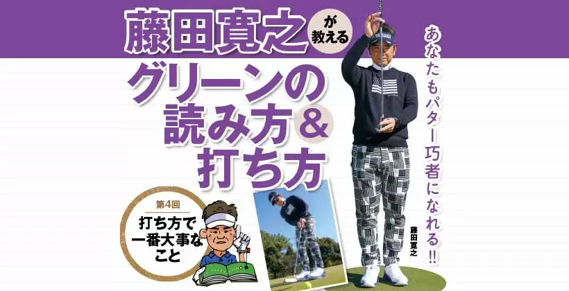 まずラインを読み、そのライン上、かつボールから1メートル以内にスパット(目印)を設定。カップまでの距離とラインを踏まえたうえで、そのスパットに向けて「どのくらいのスピードで打つか」をイメージします。そして、そのスピード感を表現しながらボールを真っすぐ打ち出します。フックラインもスライスラインも、やることはすべて同じです。