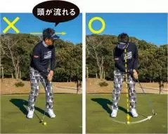 本人は固定しているつもりでも、頭が動いてしまう人がとても多い。このミスが直らない人は、インパクト後もボール位置を見続けるつもりでストロークしよう。