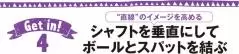 写真右)垂直にしたシャフトを定規のように使い、ボールとスパットを直線的に結ぶ。