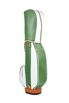 かなりレアなグリーンのバッグ。スリムタイプで、白のアクセントが効いている。
