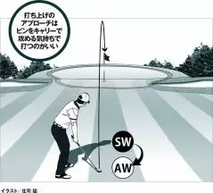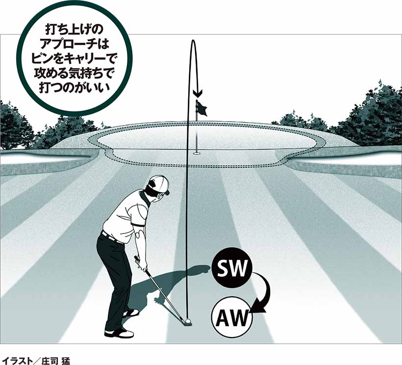 打ち上げのアプローチはピンをキャリーで攻める気持ちで打つのがいい