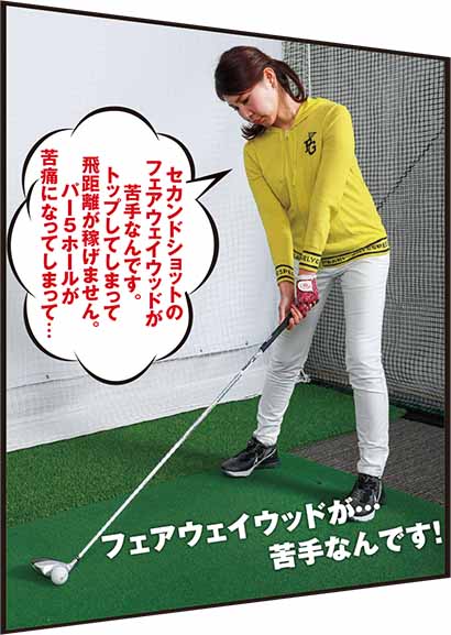 河田さんのお悩み「セカンドショットのフェアウェイウッドが苦手なんです。トップしてしまって飛距離が稼げません。パー5ホールが苦痛になってしまって…」