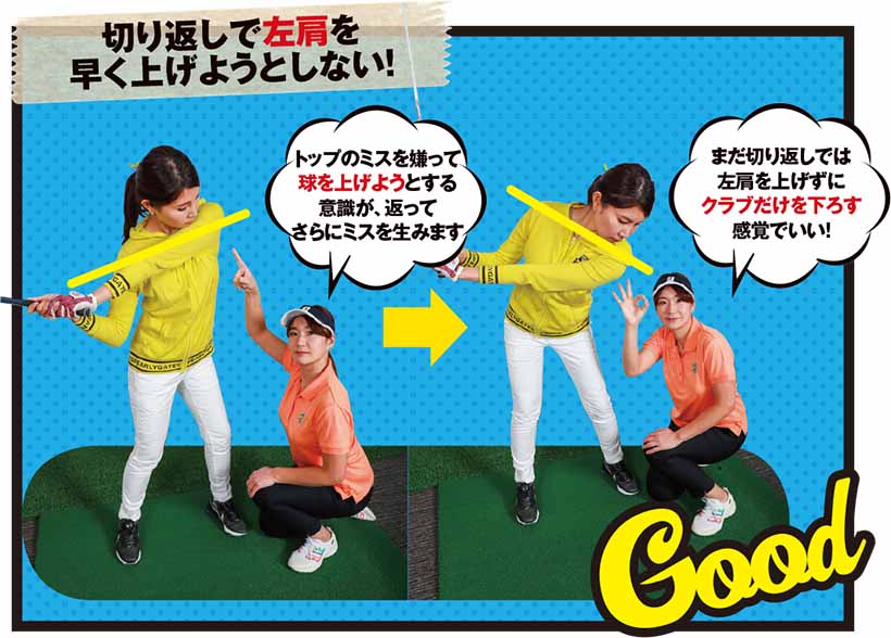 切り返しで左肩を早く上げようとしない!