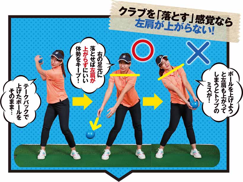 クラブを「落とす」感覚なら左肩が上がらない!