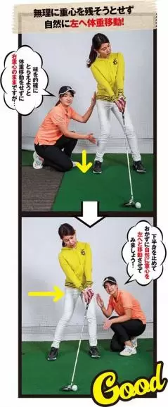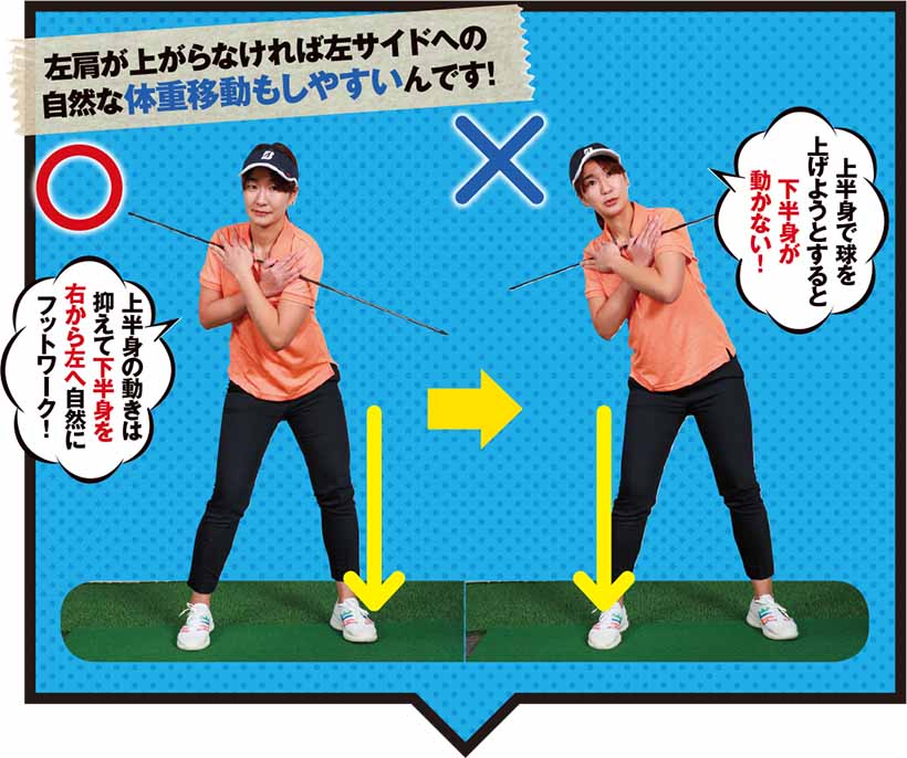 左肩が上がらなければ左サイドへの自然な体重移動もしやすいんです!