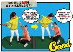 写真 右)まだ切り返しでは左肩を上げずにクラブだけを下ろす感覚でいい!