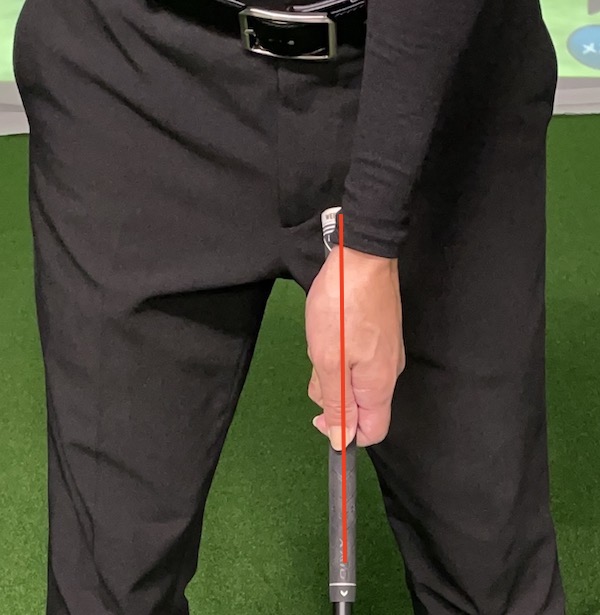 そしてウィークグリップの場合はグリップの真上に。スクエアグリップの場合はグリップの真上よりも少し右側に。ストロンググリップの場合はグリップの右側に置く、もしくは添えるようにします(自分から見た場合)。