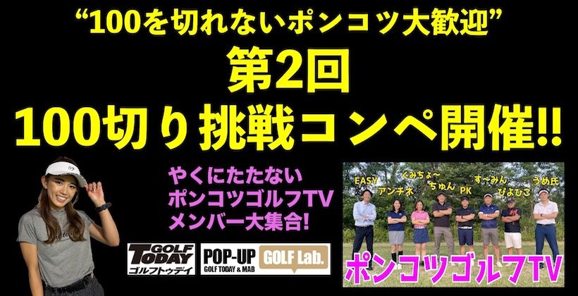 7月に初開催し、大好評で幕を閉じた「100切り挑戦コンペ」の第2回大会の開催が正式決定いたしました!「100切り未経験」「たまにしか100切りしない」そんな90台スコアを目指すゴルファーは集合!! みんなで一緒に100切りを目指そうではないですか。豪華ゲスト(やくにたたない ポンコツゴルフTVメンバー/坪井ミサト)との同組プレー、そして豪華商品をゲットできるチャンスでもあります。これからゴルフをもっと楽しみたいという方、ご参加お待ちしています!