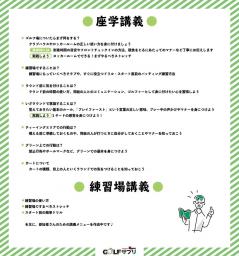 クラブハウスの過ごし方や練習場の使い方から、上達するうえで知っておくべきゴルフクラブの知識、ストレッチの方法など一緒に楽しく習得しましょう!