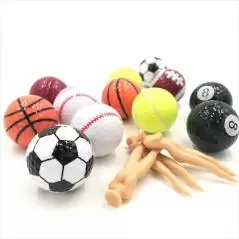 ゴルフ用品面白グッズの詰め合わせです。サッカー模様など6種類のゴルフボール12個に、セクシーな形状のティをセットしています。価格は送料別の3,180円と値頃です。