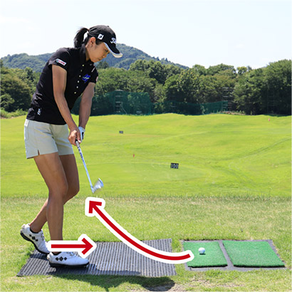 要はスイングのリズムやタイミングは腕や手で作るものではなく、足で作るものなんです。また歩きながらボールに近づくことで、ボールとカラダの間隔を適切にキープして左足を踏み出して打つ感覚もつかめます。これはインパクトのタイミングの安定化に大きな効果があります。練習場のマットで練習するなら、通常のスタンスの位置から少し離れて立ち、歩幅の小さい足踏みでボールを打つといいでしょう。クロスハンドドリルと歩き打ちドリルは私自身も実践していますし、多くのアマチュアにも勧めています。あなたもぜひ試してくださいね。