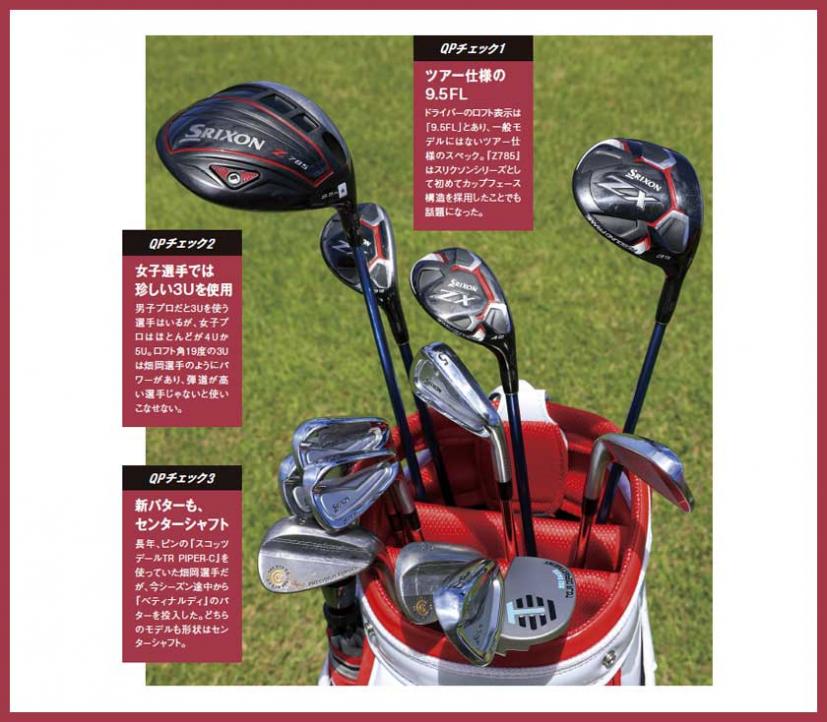 『スリクソン』を中心としたセッティングは男子選手のような感じですが、このクラブ選びにつながったのがボールの選択にあると思います。日本ツアーで『スリクソン』のボールを使う選手は初速が出る『スリクソンZ‐STAR XV』を使う選手が多いです。実は畑岡選手も16年までは『Z‐STAR XV』を使っていました。しかし米国ツアー参戦1年目の途中からスピン系の『スリクソンZSTAR』に変更。本人に話を聞くと、米国ツアーのグリーンに対応するためにスピン系のボールにしたそうです。
