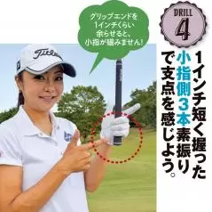 ドリル4|1インチ短く握った小指側3本素振りで支点を感じよう。