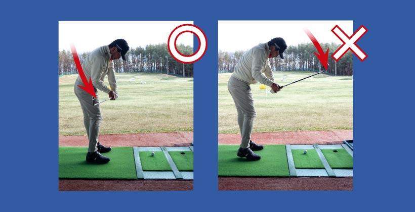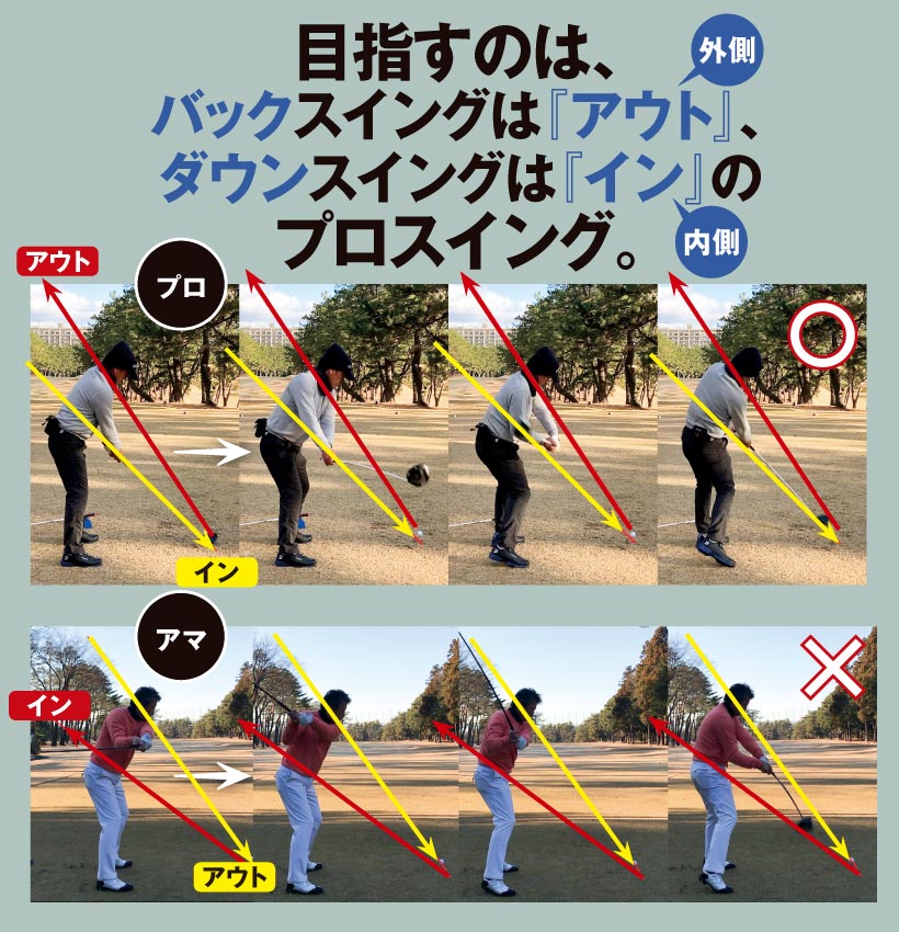 目指すのは、バックスイングは『アウト(外側)』、ダウンスイングは『イン(内側)』のプロスイング。