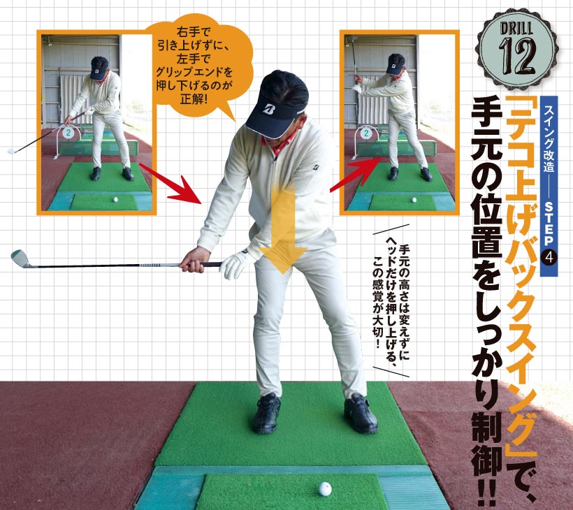 ドリル12|【スイング改造︱STEP4】「テコ上げバックスイング」で、手元の位置をしっかり制御!!