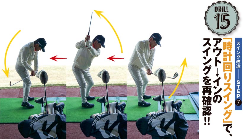 ドリル15|【スイング改造︱STEP7】「時計回りスイング」で、アウト→インのスイングを再確認!!