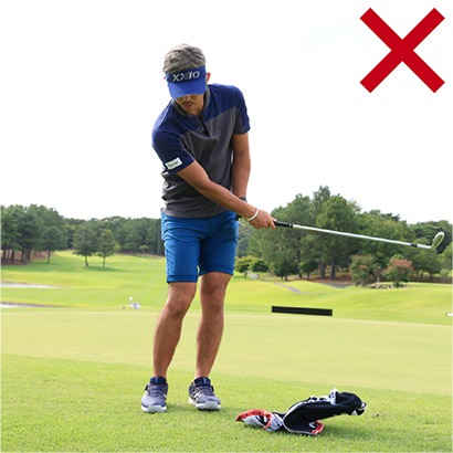 この練習を繰り返し行うとヘッドの軌道が安定し、スイートスポットでボールコンタクトする確率がアップします。その結果、チャックリしたり、トップしたりというミスが減ります。