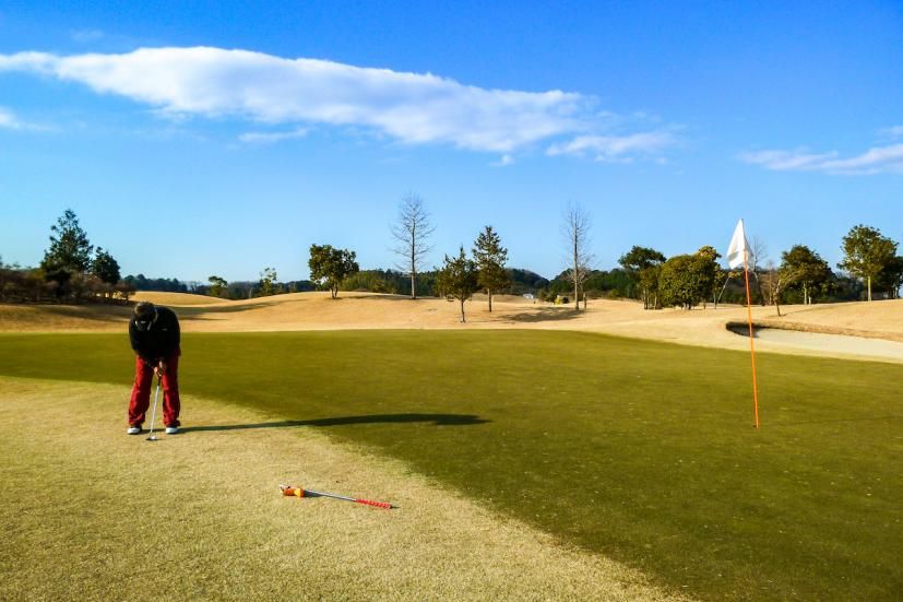 さらにグリーンエッジから下り傾斜に立つピンに向かってアプローチするときや、薄いライからのアプローチで役にたちます。