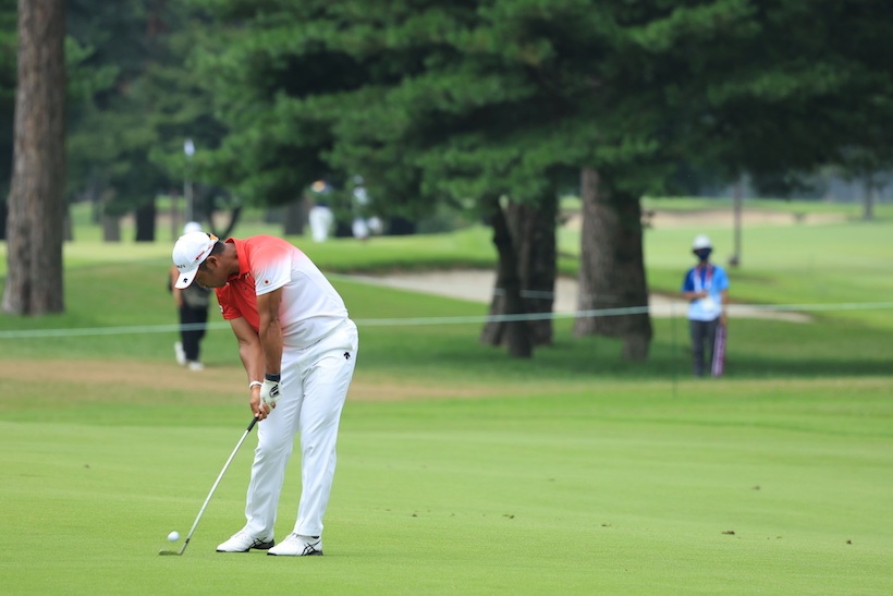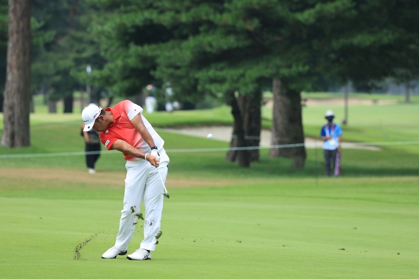 松山英樹のアプローチショット連続写真【2020東京五輪・R1】(2021年)