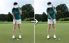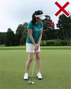 といっても大事な場面でのショートパットは、どうしても緊張してしまいますよね。このパットを入れたらうれしいバーディ。これを決めたらベストスコア達成。こんなときは結果を先に考えてしまいがちです。1メートルのショートパットは構えたときにボールを見ていても、カップが視界に入りますから、ストローク中に目が泳ぎやすい点に注意しましょう。インパクト前に目がカップの方に行くと顔も早くカップを向いて、上体が突っ込みやすくなります。ルックアップのミスというわけですが、これを防ぐには構えたときの目線を、ボールを打ち終えるまでキープすること。そしてカップインの音を左耳で聞くようにすることです。