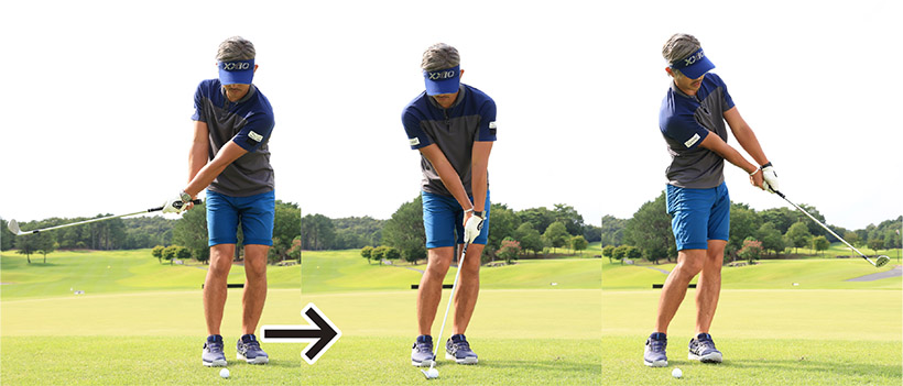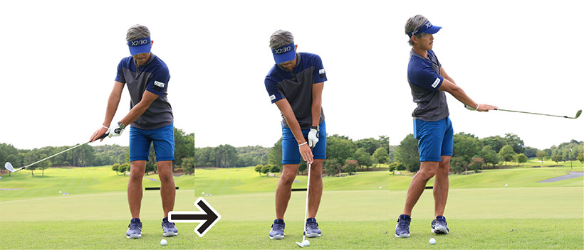 ボールの位置を変えるだけで、スイングは変えないのがコツ