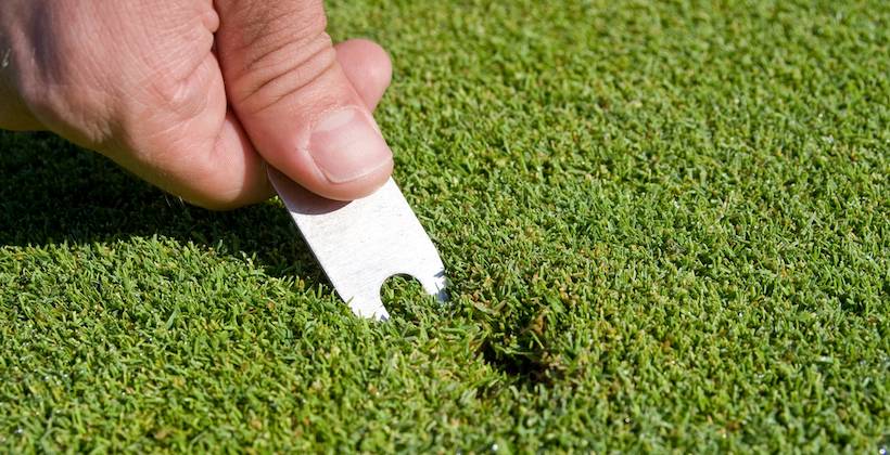 ピッチマークを放置すると芝が枯れて凹みが残り、プレーに支障が出ます。また、修復するのに時間と費用がかかります。フェアウェイでのディボット跡と同様、自分が作ったピッチマークは自分が直すのがゴルファーのマナーです。