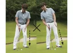 左足上がりではボールは高く上がりやすく、左足下がりではボールは低くなりやすくなります。その傾向を生かしてシンプルにアプローチするのが可能ですが、中上級者であれば、少しボール位置を動かして球の高さを揃える方法も有効です。
