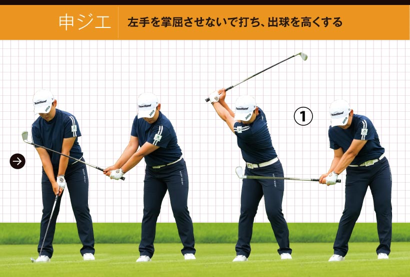 申ジエ|左手を掌屈させないで打ち、出球を高くする