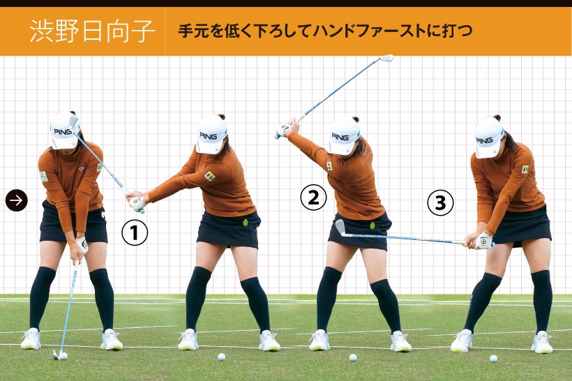 渋野日向子|手元を低く下ろしてハンドファーストに打つ