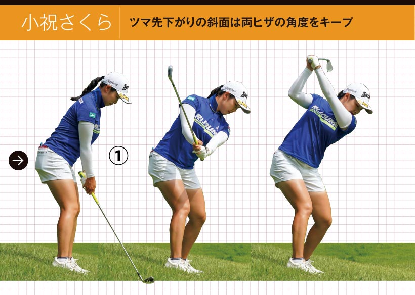 小祝さくら|ツマ先下がりの斜面は両ヒザの角度をキープ