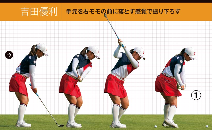 吉田優利|手元を右モモの前に落とす感覚で振り下ろす