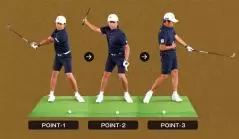 POINT-3 インパクト後も骨盤を回転し、ベルトのラインに沿ってクラブを低い位置へと振り抜くイメージ。