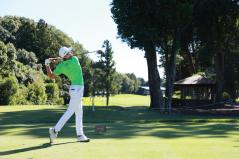 ZOZOチャンピオンシップで一時トップに立つなど、好プレーを披露しているホアキン・ニーマン(チリ)。優勝候補の一人に数えられている。ダウンスイングでの、ものすごい“サイドベンド(側屈)”に注目。