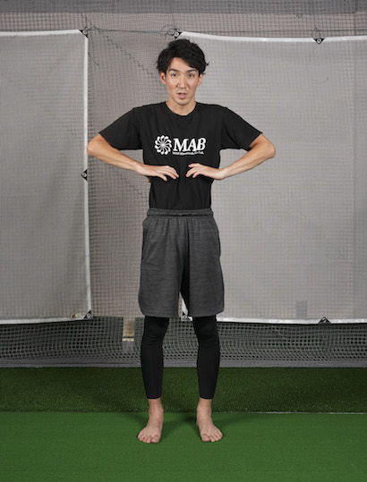 横隔膜を引き上げるようなイメージで、肺の中の空気をすべて出し切る。何度か行うことで、横隔膜が上下する感覚をつかめるようになる。