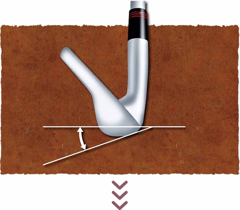ただし、ソール面が広かったり、バウンス角が大き過ぎたりすると、インパクト時にヘッドが跳ねてトップしたり、フェースが被ってフックしやすくなったりする。スイングに合った適正値を探す必要がある。